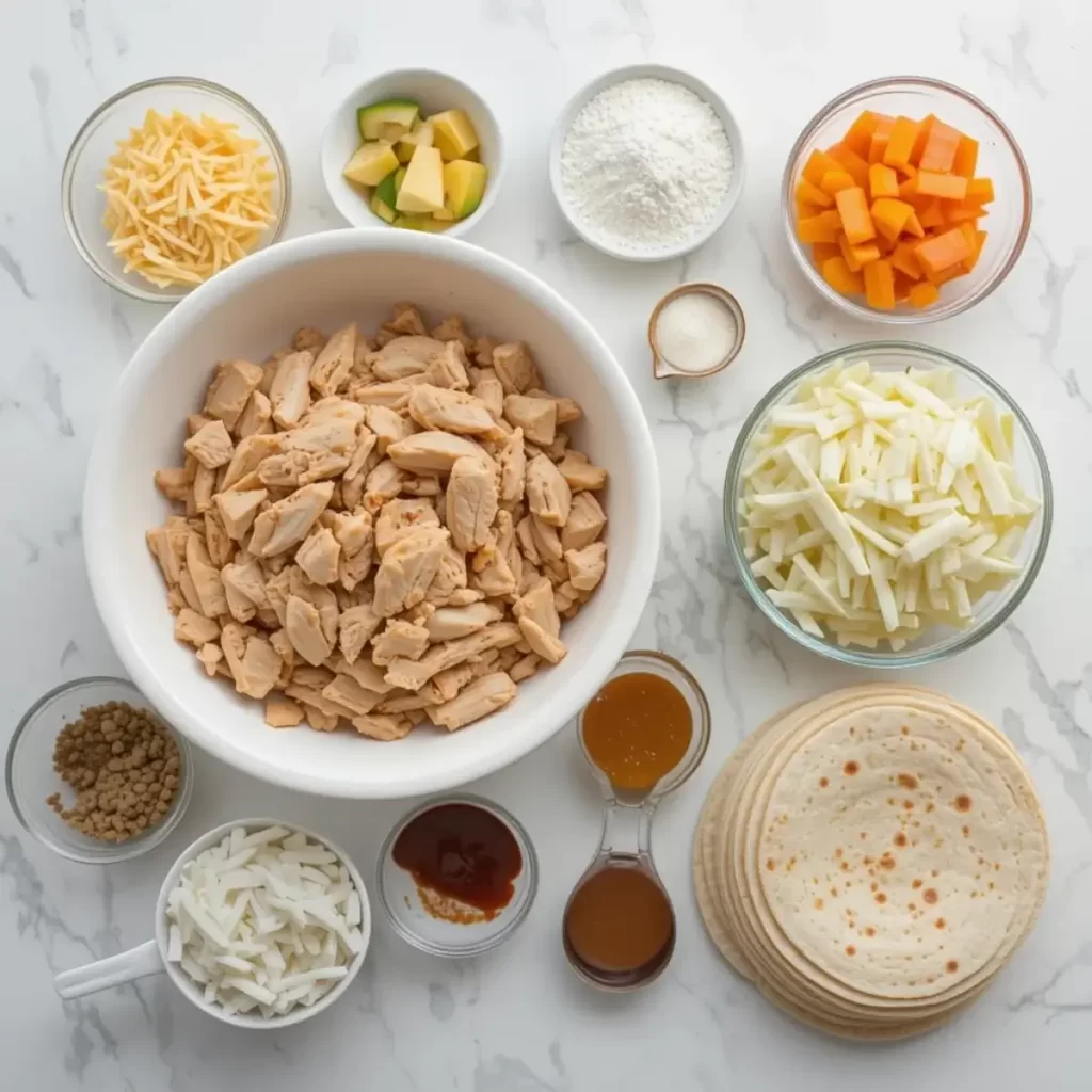 1. Spread 1–2 tablespoons of the jalapeño sauce on one tortilla. Top with shredded chicken and a generous layer of cheese. Place another tortilla on top (or fold in half if using just one tortilla).